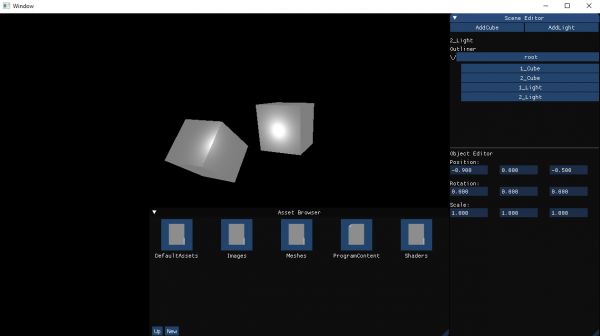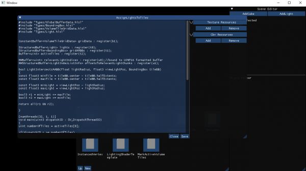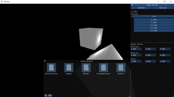 Currently, Lightsquare is an unoptimized implementation of a Volume Tiled Forward Renderer, using a custom, dx12 agnostic, renderer abstraction that I wrote from scratch. Lightsquare uses its own Asset System to store or load data from asset files. Assets are loaded into memory once, using per asset class serialization code written by the user. The UI, which is also visible in the screenshots, is based on Dear ImGui's high level interface, but I'm planning on building a non poll based UI system with a more clear ownership and notification chain using Dear ImGui's internal interface.